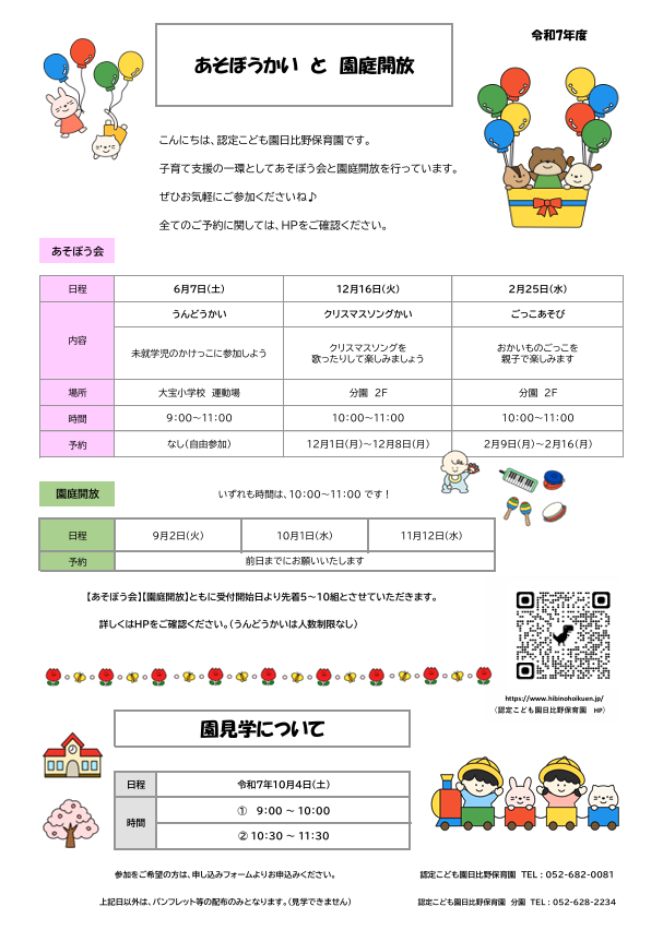 子育て支援の一環で、あそぼうかい と 園庭開放 を行います。